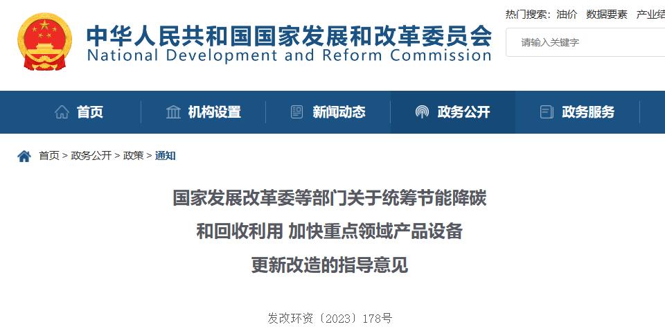 國(guó)家發(fā)展改革委等部門(mén)關(guān)于統(tǒng)籌節(jié)能降碳和回收利用 加快重點(diǎn)領(lǐng)域產(chǎn)品設(shè)備更新改造的指導(dǎo)意見(jiàn)