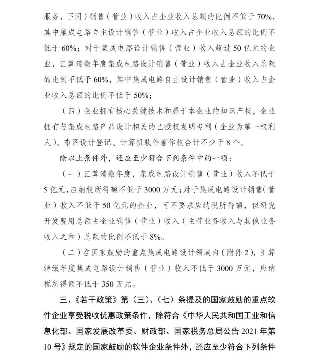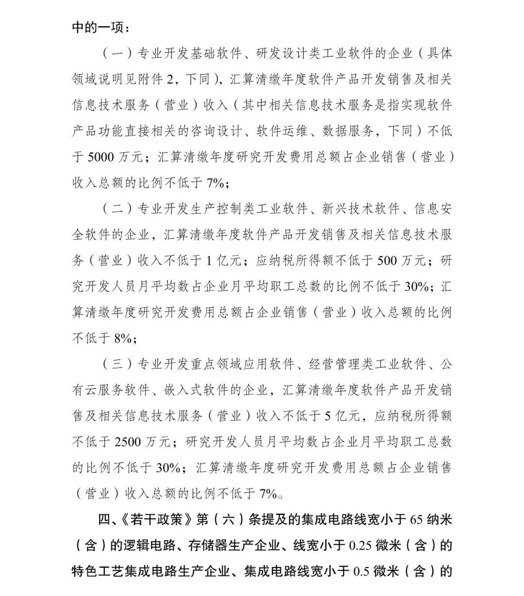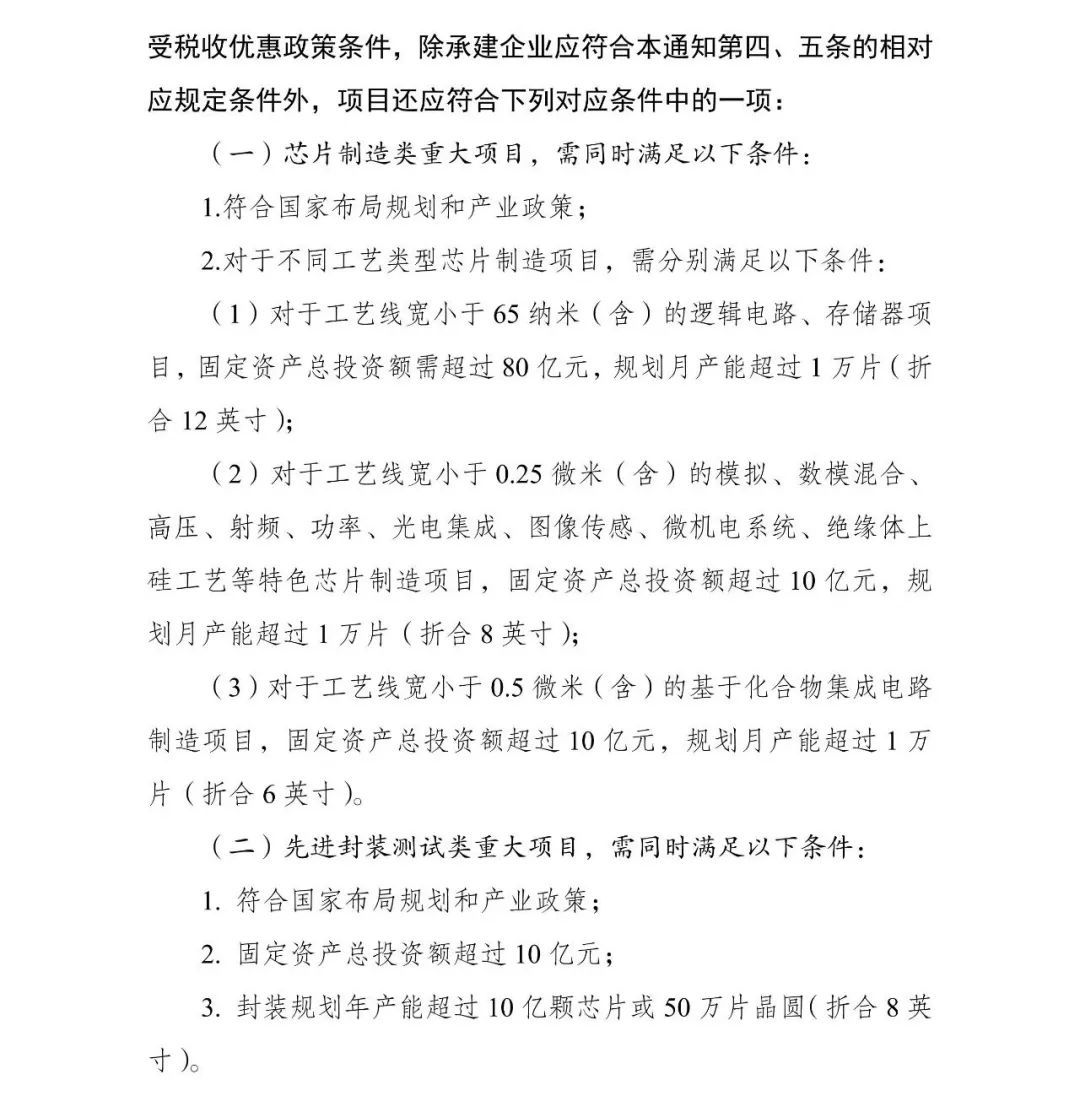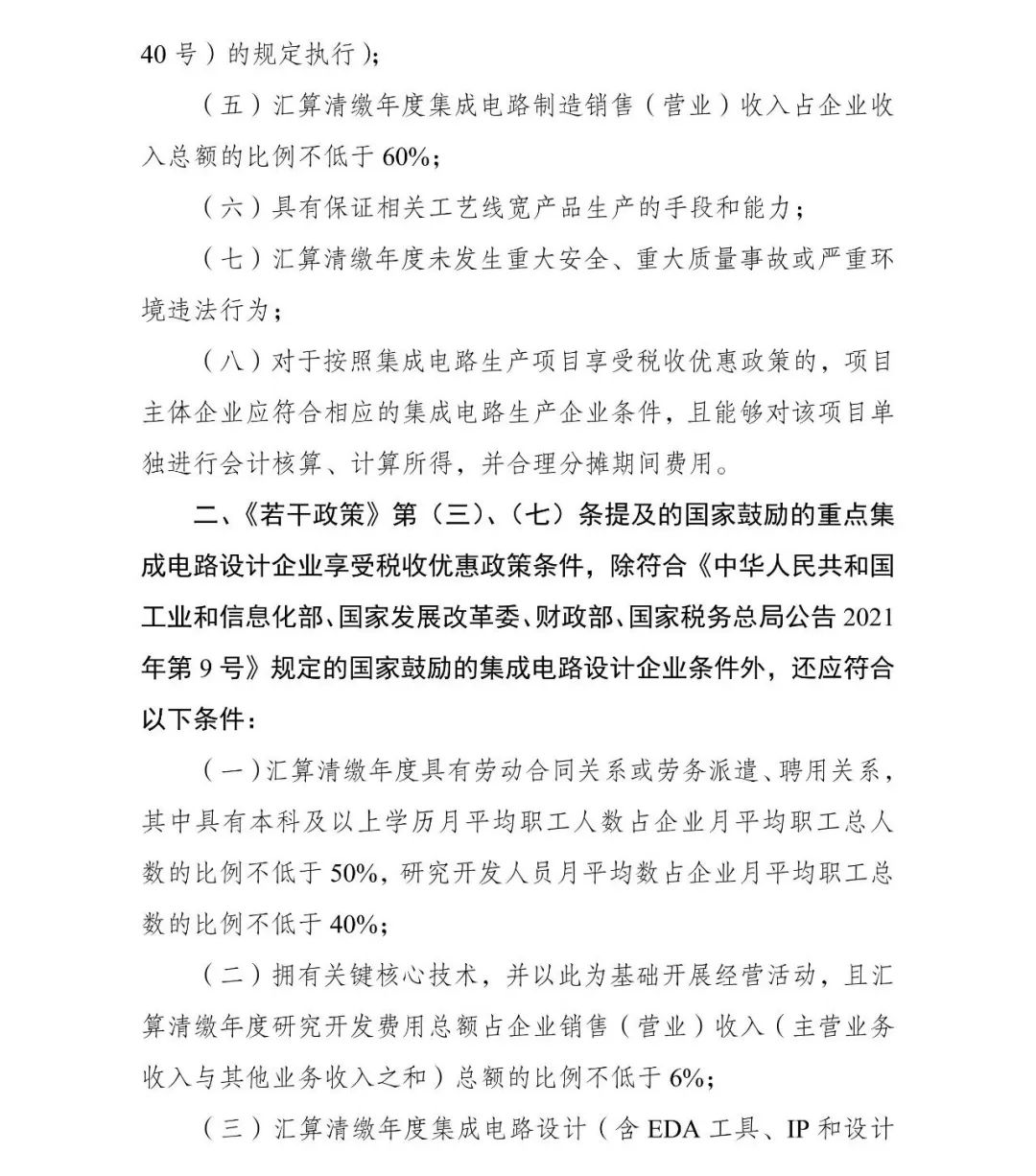 為促進(jìn)我國集成電路產(chǎn)業(yè)持續(xù)健康發(fā)展,根據(jù)《國務(wù)院關(guān)于印發(fā)新時(shí)期促進(jìn)集成電路產(chǎn)業(yè)和軟件產(chǎn)業(yè)高質(zhì)量發(fā)展若干政策的通知》(國發(fā)〔2020〕8號,以下簡稱《若干政策》)及其配套政策有關(guān)規(guī)定,經(jīng)研究,2023年享受稅收優(yōu)惠政策的集成電路企業(yè)或項(xiàng)目、軟件企業(yè)清單(以下簡稱“清單”)制定工作,延用2022年清單制定程序、享受稅收優(yōu)惠政策的企業(yè)條件和項(xiàng)目標(biāo)準(zhǔn)?,F(xiàn)就有關(guān)事項(xiàng)通知如下: