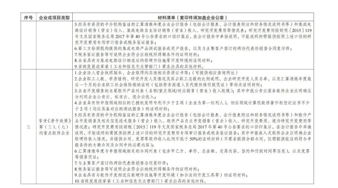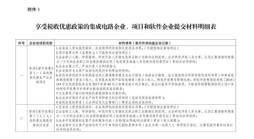 3.享受稅收優(yōu)惠政策的集成電路企業(yè)、項(xiàng)目和軟件企業(yè)提交材料明細(xì)表