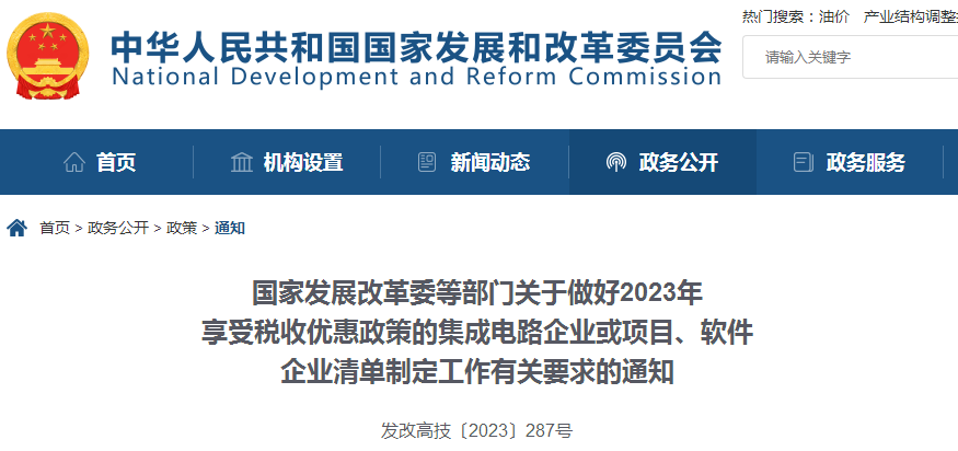 國家發(fā)展改革委等部門關(guān)于做好2023年享受稅收優(yōu)惠政策的集成電路企業(yè)或項(xiàng)目、軟件企業(yè)清單制定工作有關(guān)要求的通知
