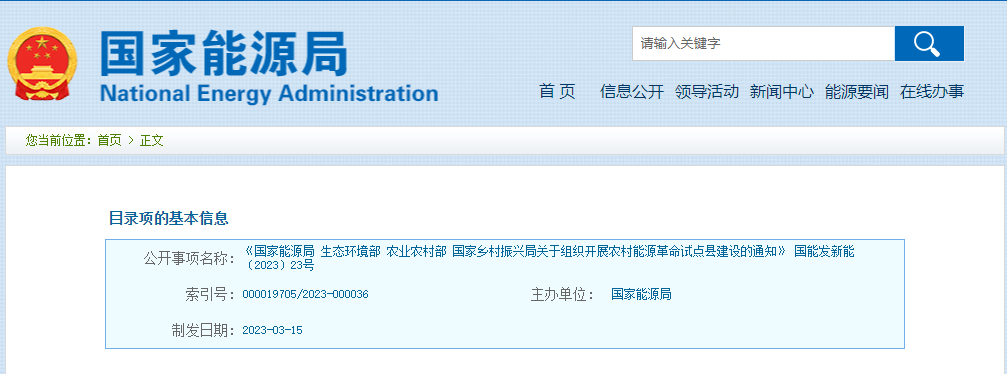 《國(guó)家能源局 生態(tài)環(huán)境部 農(nóng)業(yè)農(nóng)村部 國(guó)家鄉(xiāng)村振興局關(guān)于組織開展農(nóng)村能源革命試點(diǎn)縣建設(shè)的通知》