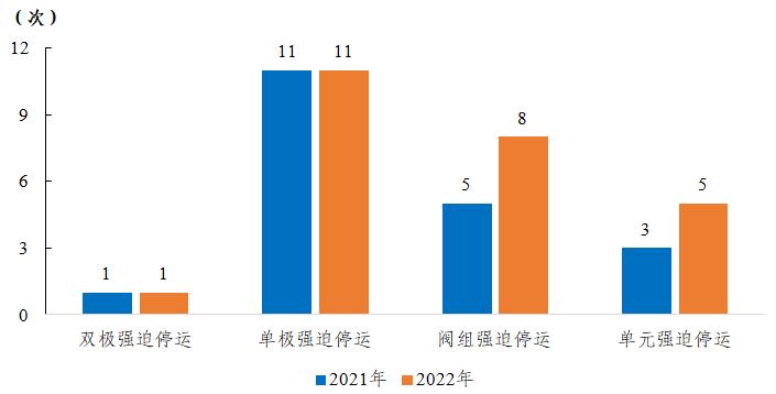 圖14 2021-2022年直流輸電系統(tǒng)強迫停運次數(shù)