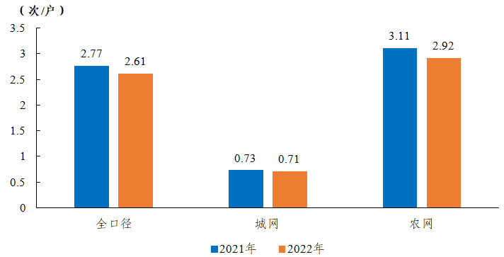 全國用戶平均停電頻率2.61次/戶,同比減少0.16次/戶,其中,城網(wǎng)0.71次/戶,農(nóng)網(wǎng)2.92次/戶。城網(wǎng)與農(nóng)網(wǎng)相差2.21次/戶。