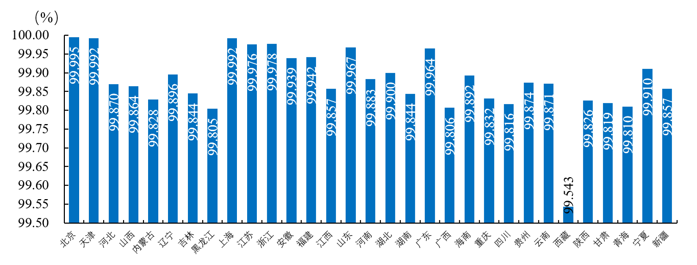 2022年,全國31個省級行政區(qū)中,北京、天津、上海、浙江、江蘇、廣東、山東的用戶平均供電可靠率高于99.95%,西藏的用戶平均供電可靠率低于99.80%。