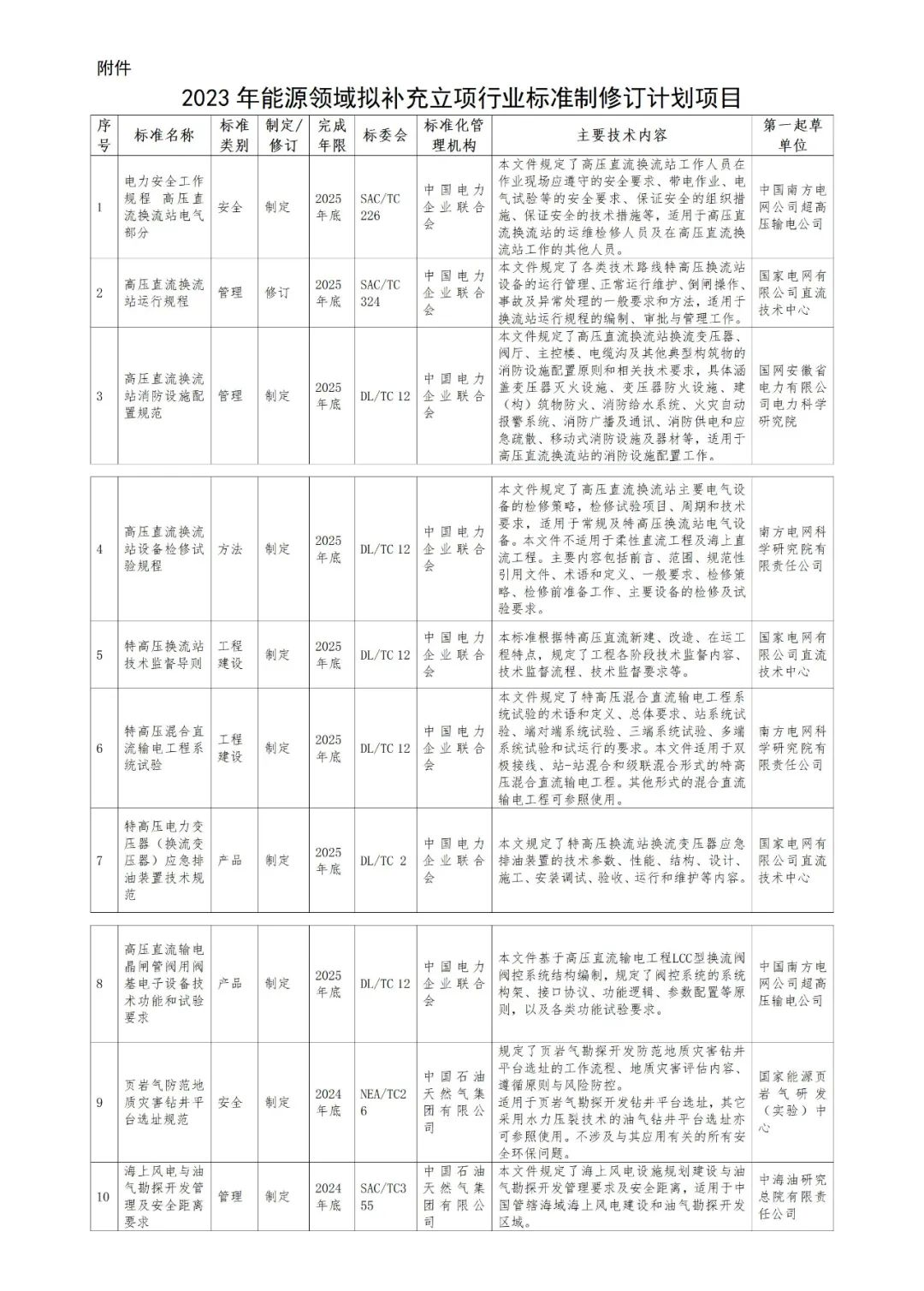 國(guó)家能源局綜合司關(guān)于公開(kāi)征求2023年能源領(lǐng)域擬補(bǔ)充立項(xiàng)行業(yè)標(biāo)準(zhǔn)制修訂計(jì)劃意見(jiàn)的通知