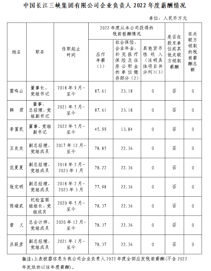 備注:上表披露信息為我公司企業(yè)負責人2022年度全部應發(fā)稅前薪酬(不含2022年發(fā)放的以往年度薪酬)。