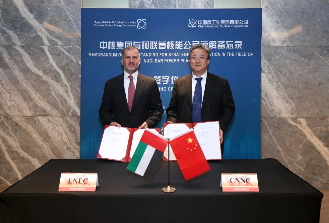 今年是中國與阿聯(lián)酋兩國建交40周年。5月30日晚,迅速響應(yīng)當(dāng)天下午國家主席習(xí)近平與阿聯(lián)酋總統(tǒng)穆罕默德共同見證簽署的關(guān)于和平利用核能的雙邊合作文件,中核集團(tuán)董事長余劍鋒在京會(huì)見了阿聯(lián)酋核能公司董事總經(jīng)理兼總裁哈馬迪一行,雙方簽署了戰(zhàn)略合作諒解備忘錄(MOU),為鞏固拓展中阿核能合作邁出重要一步。
