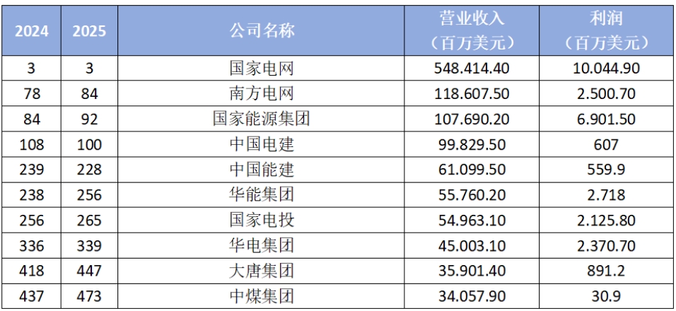 7月29日,2025年《財富》世界500強放榜,此次上榜門檻(最低銷售收入)從321億美元增長至322億美元。除國家電網外,電力央企排名均有小幅變化。