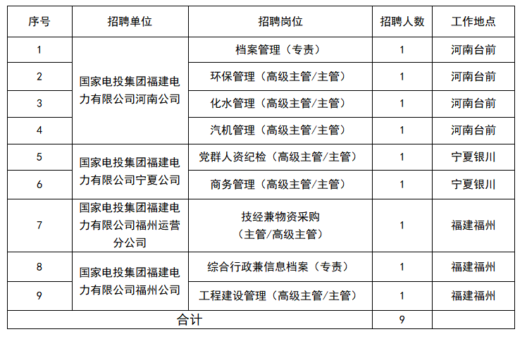 國(guó)家電投集團(tuán)福建電力有限公司所屬單位招聘公告