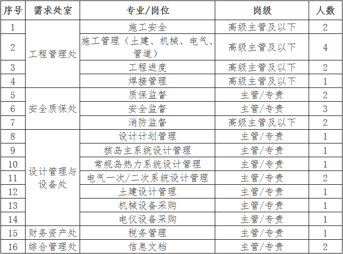 (2)副科級崗位:報名人員為副科級的,對任職年限不作要求;報名人員為一般員工的,需在主管/專工級崗位工作滿3年及以上。