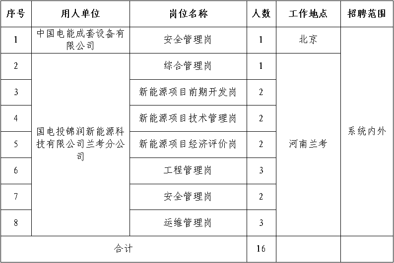為加快推進公司新興產(chǎn)業(yè)落地,保障各項經(jīng)營管理工作有序開展,根據(jù)相關(guān)所屬企業(yè)用人實際,面向國家電投集團系統(tǒng)內(nèi)、外公開選聘專業(yè)技術(shù)人員共16名。現(xiàn)將有關(guān)事項公告如下: