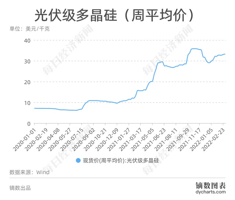 在2022年開局,光伏價格并未下降,材料價格仍然在上漲。不僅是硅料,還包括硅片、電池片、組件等。