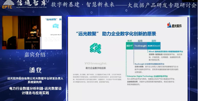 經(jīng)過(guò)多年積累,遠(yuǎn)光軟件推出了“遠(yuǎn)光數(shù)聚”智能大數(shù)據(jù)一站式服務(wù)平臺(tái),并以技術(shù)、數(shù)據(jù)、應(yīng)用服務(wù)化為產(chǎn)品動(dòng)因,研發(fā)系列產(chǎn)品,如企業(yè)數(shù)字化創(chuàng)新應(yīng)用平臺(tái)Realinsight、能源大數(shù)據(jù)服務(wù)平臺(tái)BDaaS等,致力于幫助企業(yè)實(shí)現(xiàn)數(shù)字化管理和創(chuàng)新。潘登向嘉賓們?cè)敿?xì)介紹了“遠(yuǎn)光數(shù)聚”的設(shè)計(jì)理念,以及為電力行業(yè)提供高效、精準(zhǔn)數(shù)據(jù)分析的應(yīng)用實(shí)踐。