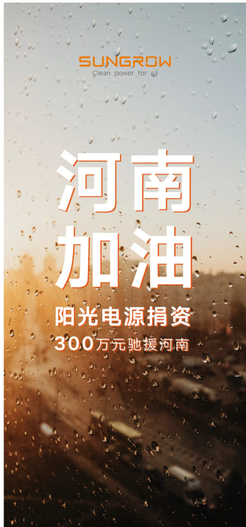 陽光電源捐資300萬元馳援河南