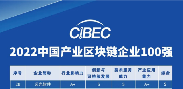 近日,2022中國產(chǎn)業(yè)區(qū)塊鏈大會在南京成功召開。本次會議由中國物流與采購聯(lián)合會、南京市鼓樓區(qū)人民政府、鏈上產(chǎn)業(yè)區(qū)塊鏈研究院聯(lián)合主辦,以“產(chǎn)業(yè)驅(qū)動、鏈以致用”為主題,深入探討產(chǎn)業(yè)區(qū)塊鏈應(yīng)用前景和方式,分享國內(nèi)外產(chǎn)業(yè)區(qū)塊鏈應(yīng)用優(yōu)秀案例與項目成果,表彰行業(yè)優(yōu)秀做法、優(yōu)秀企業(yè)。會上重磅發(fā)布“2022中國產(chǎn)業(yè)區(qū)塊鏈企業(yè)100強(qiáng)”榜單,遠(yuǎn)光軟件憑借過硬的技術(shù)研發(fā)實(shí)力和產(chǎn)品應(yīng)用成果入選,并獲S級評分,名列第28位。