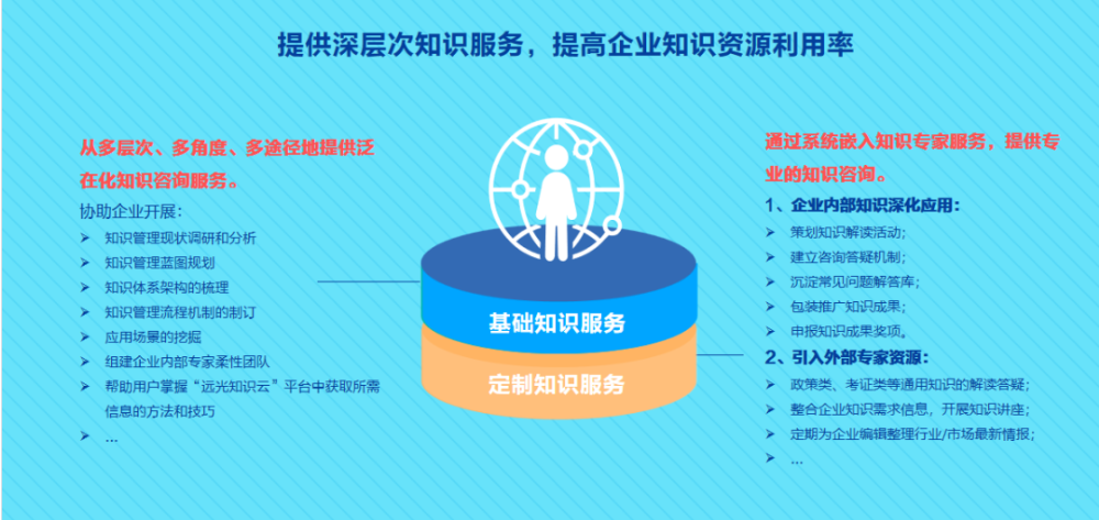 除了提供全方位的平臺(tái)支撐外,遠(yuǎn)光知識(shí)云同時(shí)還提供“三位一體知識(shí)服務(wù)”:內(nèi)容資源服務(wù)、知識(shí)咨詢服務(wù)、知識(shí)運(yùn)營(yíng)服務(wù)。幫助企業(yè)持續(xù)提升知識(shí)管理能力,充分發(fā)揮知識(shí)管理價(jià)值,提升企業(yè)核心競(jìng)爭(zhēng)力。