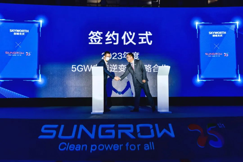 創(chuàng)維光伏副總經(jīng)理肖振表示:“陽光電源作為光伏行業(yè)龍頭企業(yè),產(chǎn)品性能卓越,服務體系高效。創(chuàng)維光伏很高興與陽光電源簽訂5GW戶用逆變器戰(zhàn)略合作,希望和陽光電源攜手共進,優(yōu)勢互補,把戶用光伏市場做大做強!”