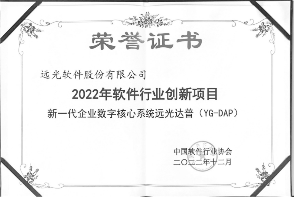 “2022年軟件行業(yè)創(chuàng)新項(xiàng)目”是面向軟件企業(yè)、科研院所、高校、開(kāi)發(fā)者等評(píng)選出的新技術(shù)、新產(chǎn)品、新成果,由中國(guó)軟件行業(yè)協(xié)會(huì)在行業(yè)監(jiān)督、專(zhuān)家評(píng)審的基礎(chǔ)上組織發(fā)布,要求入選項(xiàng)目具有自主知識(shí)產(chǎn)權(quán),且有一定的先進(jìn)性、創(chuàng)造性,有明確的應(yīng)用場(chǎng)景,未來(lái)有較大的市場(chǎng)價(jià)值和社會(huì)價(jià)值。本次遠(yuǎn)光軟件多個(gè)產(chǎn)品入選,彰顯了業(yè)界對(duì)公司產(chǎn)品技術(shù)創(chuàng)新和研發(fā)實(shí)力的高度認(rèn)可。