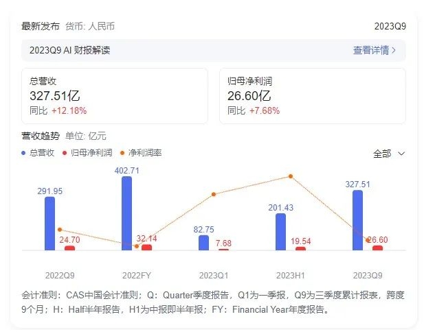 沃爾核材:2023三季報凈利潤4.8億 同比增長7.87%