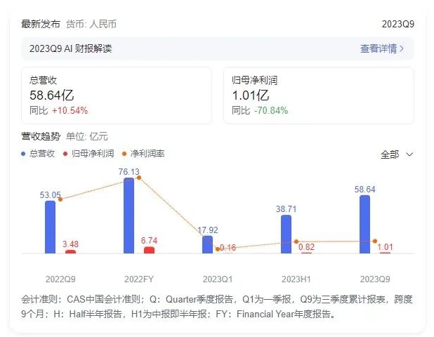 長園集團:2023三季報凈利潤1.01億 同比下降70.98%