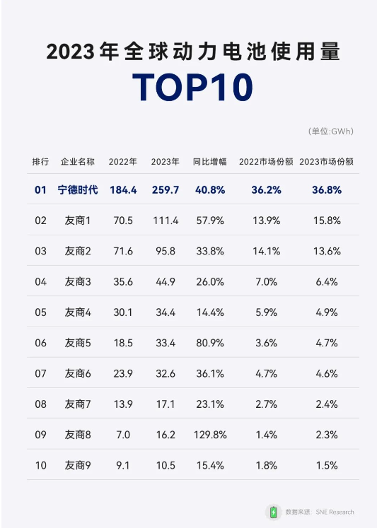另據(jù)CATL寧德時代官方微信號,近日,韓國電池和能源研究公司SNE Research發(fā)布了2023年全球動力電池使用數(shù)據(jù),寧德時代連續(xù)7年,登頂全球第一。