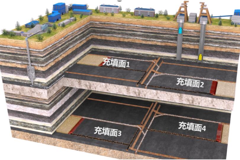四是研究攻關(guān)多面并采的負碳高效充填開采技術(shù)與工藝,破解礦山充填開采影響煤炭產(chǎn)能的難題。攻關(guān)新型充填開采技術(shù),創(chuàng)新負碳高效膠結(jié)高孔隙充填體工藝方法,來提高單面充填開采產(chǎn)能(100~500萬t/a)。在此基礎(chǔ)上,構(gòu)建實施2~3個工作面同時并采的技術(shù)方案思路,就可實現(xiàn)千萬噸級礦井負碳高效充填開采。同時探索攻關(guān)單層采區(qū)多面并采和立體空間多面并采的負碳高效開采工藝和相應(yīng)的負碳高效充填技術(shù)及裝備,突破充填開采影響煤炭生產(chǎn)效率的瓶頸,可望實現(xiàn)千萬噸級以上產(chǎn)能的礦山負碳高效充填開采。