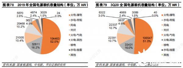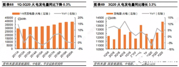 2019/2020 年冬季(2019 年 12 月及 2020 年1月、2月),全國平均氣溫較常年同期偏高1.1℃,是 1961年以來歷史同期第五高。暖冬疊加疫情,雖然有春節(jié)淡季因素存在,發(fā)、用電量仍下降超過5%,Q1火電發(fā)電量下降 8.2%,全行業(yè)上市公司營收下降 9.9%。隨著新冠疫情迅速得到有效控制,全社會(huì)用電需求顯著回暖,同時(shí)上半年水電出力不足,火電發(fā)電量在 Q2同比增長 6.5%。但 Q3水電大發(fā),火電同比增速回落至 3.3%。
