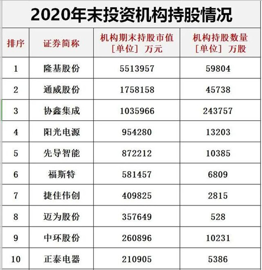 這也意味著,不少機構(gòu)投資者在2020年第四季度集中拋售了手里的“光伏籌碼(股票)”。