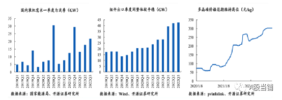 1、國內(nèi)一季度往往為需求淡季,環(huán)比往往會有一定幅度下滑,考慮部分年底并網(wǎng)量第二年一季度安裝以及1.2容配比,預(yù)計2023年一季度組件實際需求不超過40GW。