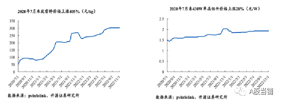 因此,預(yù)計硅料價格一季度左右開始下行:以12月份硅料供應(yīng)量對應(yīng)季度組件供應(yīng)量約117GW看,已經(jīng)超過2023年一季度需求,預(yù)計2023年一季度左右硅料價格開始下行。