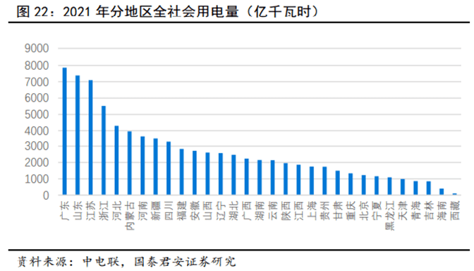 我們可以以廣東、江蘇、浙江三省第二產業(yè)的30%和第三產業(yè)的合計用電量,作為峰谷電價差套利的儲能市場規(guī)模。