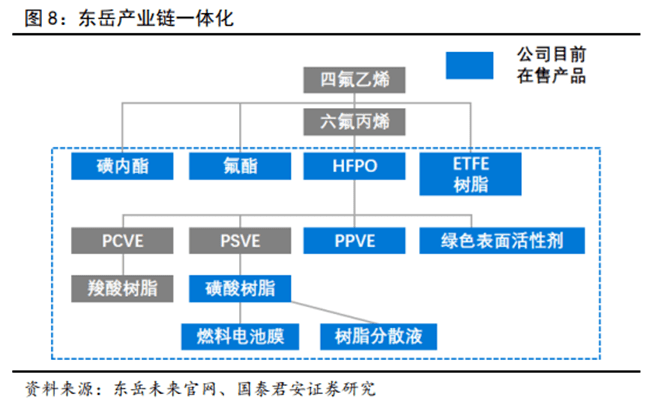 質(zhì)子交換膜(PEM):目前主流技術是全氟磺酸質(zhì)子交換膜。PEM逐漸趨于薄型化,由幾十微米降低到十幾微米,降低質(zhì)子傳遞的歐姆極化,以達到更高的性能。競爭格局方面,美國的科慕和戈爾領先市場,后者產(chǎn)品系列最為豐富、產(chǎn)品實際應用案例最多,是車用燃料電池市場的主導者 。國內(nèi)研制能力強、已有規(guī)模化生產(chǎn)能力的主要是東岳未來,其以完整的含氟精細化工產(chǎn)業(yè)鏈為特點。