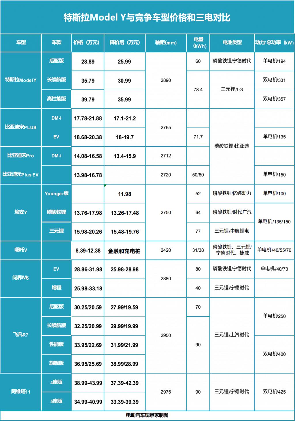 緊湊型的比亞迪宋 / 元新能源和埃安 Y 并不是中型的 ModelY 的直接競品。但當新能源 SUV 市場的定價車型拿出新價格時,盡管中間存在 10 萬元的價差,還是必須 " 跟牌 ":