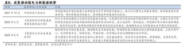 轉(zhuǎn)型不止囿于眼前的煤電,更在于牽手新能源。隨著我國(guó)碳達(dá)峰、碳中和目標(biāo)的提出,安全、清潔、經(jīng)濟(jì)的階段性不平衡問題日益突出,煤電與新能源間的發(fā)展矛盾逐漸成為新型電力系統(tǒng)建設(shè)中的重要議題,國(guó)家層面對(duì)煤電和新能源的協(xié)同發(fā)展也在進(jìn)行積極的思考與研究。2021 年 12 月中央經(jīng)濟(jì)工作會(huì)議,國(guó)家首次提出要立足以煤為主的基本國(guó)情,抓好煤炭清潔高效利用,增加新能源消納能力,推動(dòng)煤炭和新能源優(yōu)化組合。2022 年 5 月,國(guó)家發(fā)改委、國(guó)家能源局聯(lián)合印發(fā)《促進(jìn)新時(shí)代新能源高質(zhì)量發(fā)展實(shí)施方案》,提出加大力度規(guī)劃建設(shè)大型風(fēng)光電基地,并按照推動(dòng)煤炭和新能源優(yōu)化組合的要求,鼓勵(lì)煤電企業(yè)與新能源企業(yè)開展實(shí)質(zhì)性聯(lián)營(yíng)。政府指導(dǎo)意見從“推動(dòng)煤炭和新能源優(yōu)化組合”到“鼓勵(lì)煤電企業(yè)與新能源企業(yè)開展實(shí)質(zhì)性聯(lián)營(yíng)”,方向更加明確、要求更為具體,為下一步產(chǎn)業(yè)結(jié)構(gòu)優(yōu)化調(diào)整指明道路。