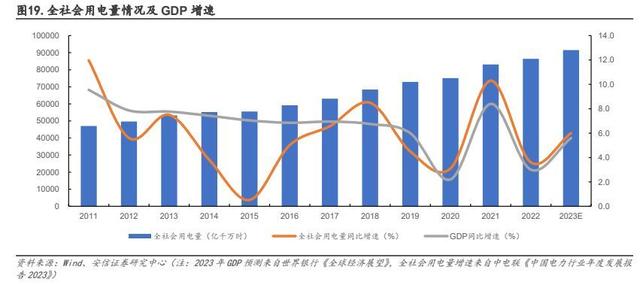供給側(cè)改革“后遺癥”顯現(xiàn),階段性缺電頻發(fā)。2021 年以來的三年里,我國(guó)局部地區(qū)出現(xiàn)了電力供應(yīng)偏緊和短暫缺電的情況,先有 2021 年 8-9 月遼寧、吉林、江蘇、浙江、廣東等地相繼發(fā)布有序用電或限電通知,后有 2022 年夏季高溫天氣導(dǎo)致水電供應(yīng)持續(xù)受限,疊加居民用電負(fù)荷增加,各地為緩解用電高峰時(shí)段供電壓力再次發(fā)布限電通知,其中云南省電解鋁企業(yè)更是在 2022 年 9 月到 2023 年 2 月間三次收到限電通知。背后反映出來的是供給側(cè)改革后煤炭、火電的長(zhǎng)期投資萎縮導(dǎo)致的產(chǎn)能不足現(xiàn)象,與此同時(shí) 2015 年后我國(guó)全社會(huì)用電量增速回升,疊加 2022 年極端高溫導(dǎo)致的空調(diào)降溫用電需求激增,電力供需的矛盾逐漸顯現(xiàn)。展望“十四五”后三年,根據(jù)《新形勢(shì)下“十四五”后三年中國(guó)電力需求形勢(shì)研判》(2023年發(fā)表)分析,“十四五”后三年中國(guó)用電量仍有較大增長(zhǎng)空間,技術(shù)進(jìn)步、能源轉(zhuǎn)型、電力市場(chǎng)、氣候氣溫等因素對(duì)用電增長(zhǎng)影響將增強(qiáng),且最大負(fù)荷受產(chǎn)業(yè)結(jié)構(gòu)調(diào)整、空調(diào)與電采暖設(shè)備推廣、氣候氣溫等影響將更為突出,增速將高于用電增速,或進(jìn)一步增大電力保供壓力。