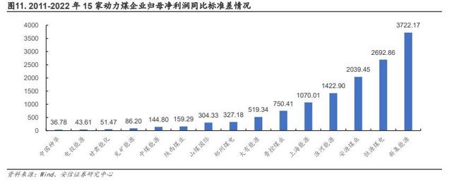 2)抵御周期方面,中國(guó)神華的煤電一體也一定程度熨平了煤、電行業(yè)周期波動(dòng),2011-2015年,受經(jīng)濟(jì)增長(zhǎng)動(dòng)能弱化、煤炭行業(yè)產(chǎn)能逐漸過剩影響,煤價(jià)整體波動(dòng)向下,同時(shí)期公司煤炭分部毛利率由 32%下降至 16%,而發(fā)電分部因成本改善毛利率由 24%上升至 36%。根據(jù)中國(guó)煤炭協(xié)會(huì)的統(tǒng)計(jì),2015 年煤炭行業(yè)虧損面已超過八成,而中國(guó)神華依舊實(shí)現(xiàn)歸母凈利潤(rùn)161.44 億元,凈利率 13.14%,位列當(dāng)年動(dòng)力煤(中信)板塊公司榜首。2021-2022 年在火電企業(yè)大幅虧損的局面下,公司發(fā)電分部憑借穩(wěn)定煤源依舊實(shí)現(xiàn)毛利率 7.7%和 14.3%。在此基礎(chǔ)上,中國(guó)神華的煤炭業(yè)務(wù)與發(fā)電業(yè)務(wù)形成良好對(duì)沖,一定程度加強(qiáng)了業(yè)績(jī)的穩(wěn)定性。我們選取 Wind 中主業(yè)為動(dòng)力煤的 15 家上市公司作為樣本,計(jì)算其 2011-2022 年歸母凈利潤(rùn)同比變動(dòng)標(biāo)準(zhǔn)差。結(jié)果顯示中國(guó)神華的同比變動(dòng)標(biāo)準(zhǔn)差最小,側(cè)面反映其盈利穩(wěn)定性。此外,據(jù)《煤電一體化深度融合發(fā)展的國(guó)神路徑研究》(2020)的分析,國(guó)家能源集團(tuán)旗下國(guó)神公司的煤電一體化項(xiàng)目除了通過傳統(tǒng)方式建設(shè)坑口電廠,減少煤炭流通環(huán)節(jié)實(shí)現(xiàn)內(nèi)部降本外,還通過水汽互補(bǔ)利用,燃料經(jīng)濟(jì)摻燒等創(chuàng)新方式降低生產(chǎn)成本,提高產(chǎn)業(yè)協(xié)同效應(yīng)。