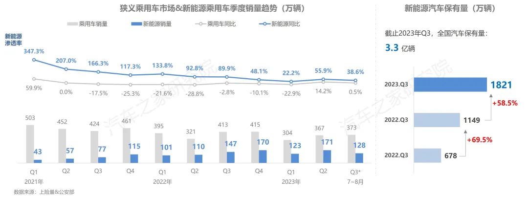 今年以來(lái),國(guó)家層面針對(duì)汽車行業(yè)轉(zhuǎn)型升級(jí)的政策頻出,使得中國(guó)車企在新能源的浪潮中迎來(lái)重大的發(fā)展機(jī)遇。此外,商務(wù)部推動(dòng)“百城聯(lián)動(dòng)”汽車節(jié)和“千縣萬(wàn)鎮(zhèn)”新能源汽車消費(fèi)季效果顯現(xiàn),這都無(wú)疑在讓中國(guó)的汽車產(chǎn)業(yè)從生產(chǎn)端與消費(fèi)端兩個(gè)方向,呈現(xiàn)出新能源汽車市場(chǎng)爆發(fā)式增長(zhǎng)。目前,中國(guó)新能源汽車保有量已經(jīng)突破1800萬(wàn)輛,今年1-8月新能源乘用車更是取得超420萬(wàn)輛銷量的成績(jī),同比增長(zhǎng)逾三成,市場(chǎng)滲透率持續(xù)保持超30%的高水平發(fā)展。