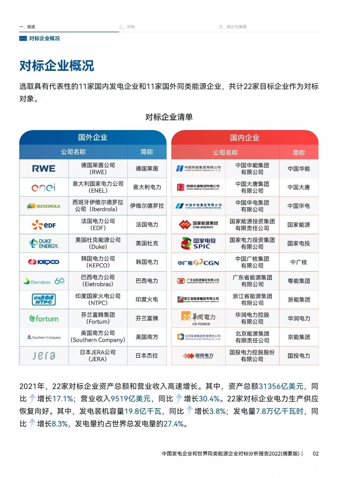 日前中國電力企業(yè)聯(lián)合會2022 年年會在??谂e行,中電聯(lián)電力發(fā)展研究院院長張?zhí)旃庠跁险桨l(fā)布《中國發(fā)電企業(yè)和世界同類能源企業(yè)對標分析報告2022》,選擇了國內11家與國外11家代表性同類企業(yè)進行對比分析!國家能源集團在裝機量、發(fā)電量等指標上全球領先,但國內發(fā)電企業(yè)的海外營收較全球同行偏低。