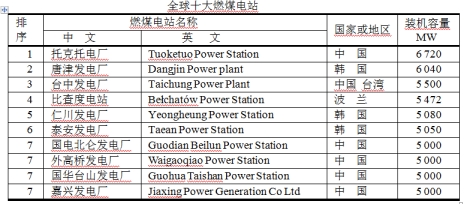 燃煤發(fā)電仍然霸占全球電力生產(chǎn)的主導地位,主要生產(chǎn)國是中國,在全球前十位中占六席。第一位由托克托電廠取代了原來的臺中發(fā)電廠。