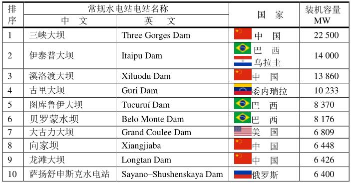 中國(guó)湖北省的三峽水電站仍然是世界上最大的水電站,總裝機(jī)容量為22.50 GW;位于巴西和巴拉圭的伊泰普水電站是世界第二大水電站,裝機(jī)容量為14.00 GW。不過,伊泰普水電站所處的巴拉那河水量豐沛且季節(jié)分布相對(duì)均衡,幾乎可以全年滿負(fù)荷發(fā)電;而三峽水電站則每年都會(huì)經(jīng)歷約6個(gè)月的枯水期,從而限制了其發(fā)電量。
