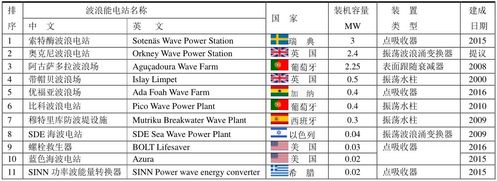 波浪能屬于海洋能之一種。根據(jù)所采用的技術(shù),波場(chǎng)可分為8種類型,如表面跟隨衰減器(Surface-following attenuator)、點(diǎn)吸收器(Point absorber)、振蕩波浪涌變換器(Oscillating wave surge converter)、振蕩水柱(Oscillating water column)、越浪/終止器(Overtopping/Terminator)、淹沒壓差(Submerged pressure differential)、鼓浪裝置(Bulge wave device)和旋轉(zhuǎn)質(zhì)量(Rotating mass)。