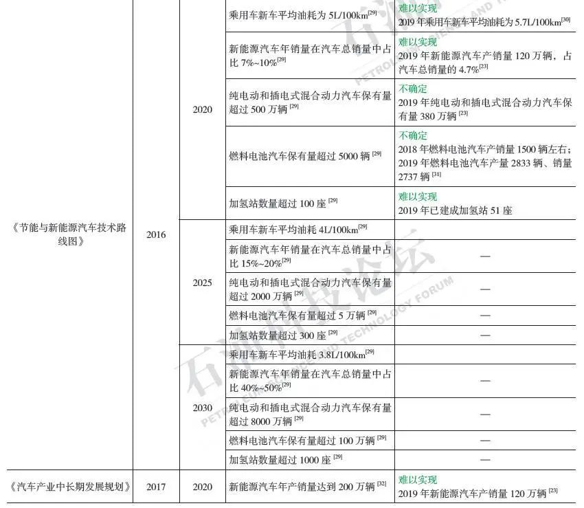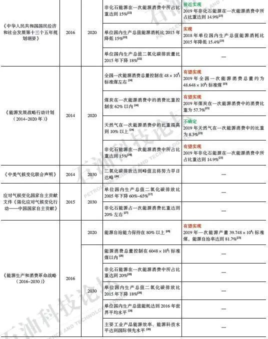 截至2020年,從中國主要能源政策目標(biāo)的完成情況可以看出:(1)中國作為世界能源生產(chǎn)、消費第一大國,在能源消費總量控制、非化石能源消費比例以及單位國內(nèi)生產(chǎn)總值能耗和碳排放方面的目標(biāo)完成情況良好;(2)交通能效及新能源汽車產(chǎn)業(yè)指標(biāo)完成情況不理想。