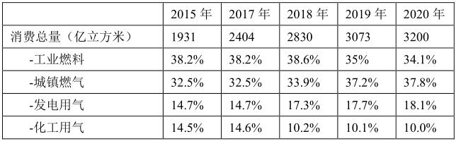 中國(guó)天然氣消費(fèi)結(jié)構(gòu)