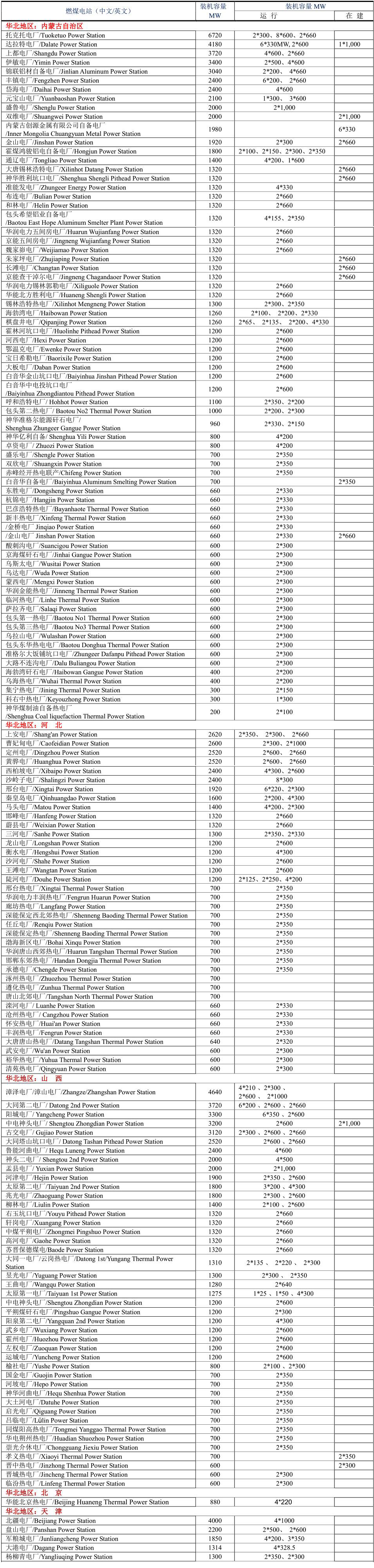 將中國(guó)一般劃分為七大地區(qū),列出2021年中國(guó)各省市燃煤電站,由于中國(guó)以燃煤發(fā)電為主,目前還在新建燃煤發(fā)電廠,因此不能保證本表完整無(wú)缺。