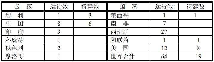 目前,全球有太陽能聚焦熱電站64座在運行,其中西班牙最多有27座,其次是美國有12座。中國運行的有8座。待建的太陽能聚焦熱電站有19座,美國8座、中國6座。