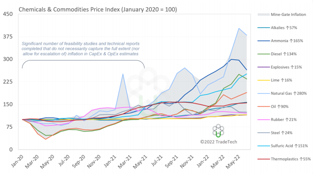 鈾礦山生產(chǎn)所需原材料價格上漲情況(Quote: TradeTech)