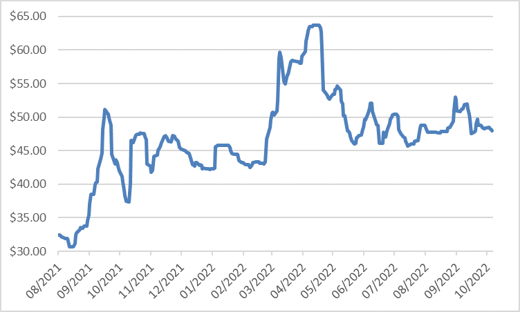 2021年8月-2022年10月鈾價