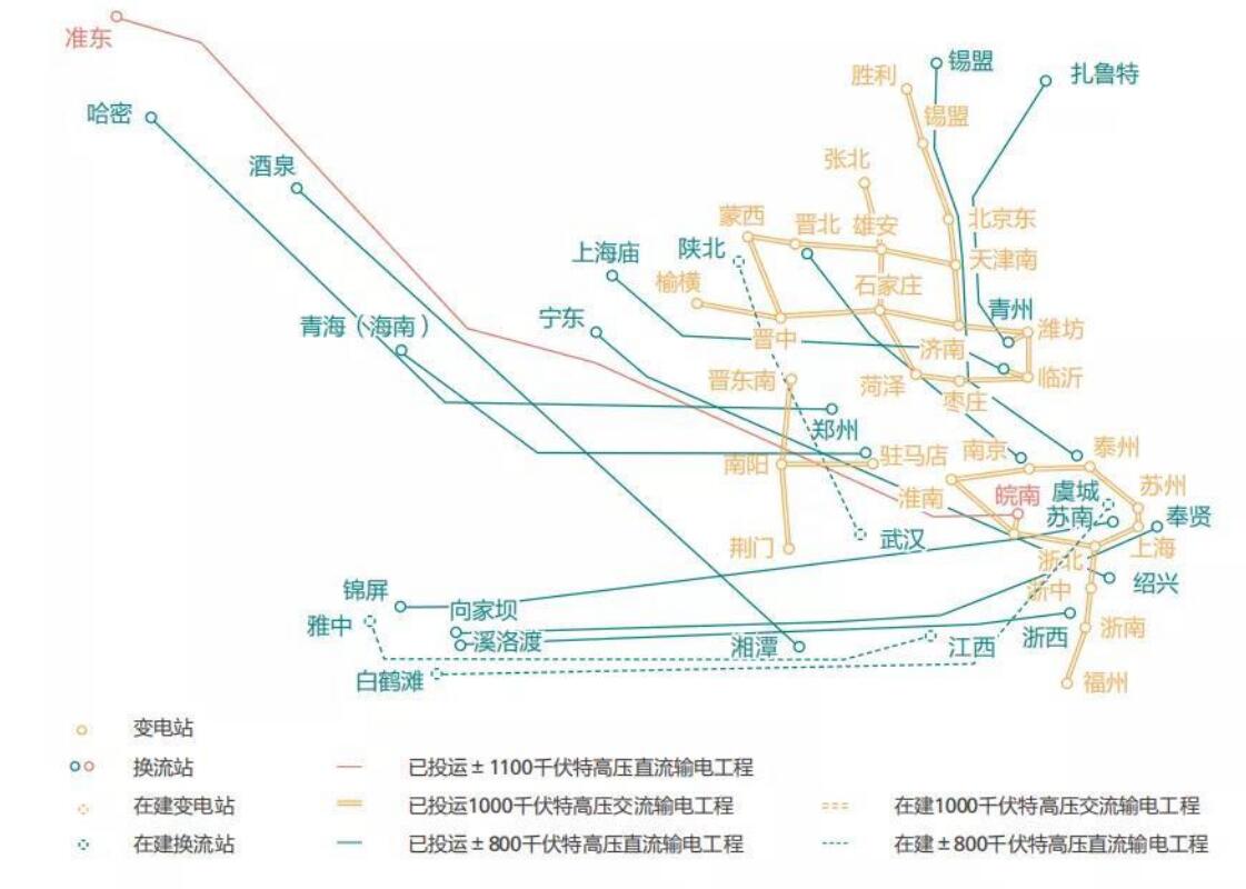 在輸配電方面,國家重點擴大容量和降低損耗:部署長距離超高壓直流(UHVDC)和超高壓交流(UHVAC)輸電,同時安裝高效非晶金屬變壓器。