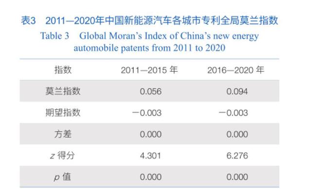 因此,由上述分析可知,新能源汽車企業(yè)是當前中國進行新能源汽車創(chuàng)新活動的主體。但一方面中國新能源汽車產(chǎn)業(yè)發(fā)展仍處于初期,并未形成相對健全的產(chǎn)業(yè)體系;另一方面則是新能源汽車的研發(fā)有較高的技術(shù)門檻,企業(yè)間的合作難以開展。中國新能源汽車產(chǎn)業(yè)創(chuàng)新網(wǎng)絡(luò)的結(jié)網(wǎng)比例及其下降趨勢也表示,大部分新能源汽車的研發(fā)基本由企業(yè)獨立完成。這使得中國新能源汽車在2011—2020年并未產(chǎn)生顯著的溢出效應(yīng),僅在長江三角洲城市群地區(qū)有一定的創(chuàng)新活動的集聚現(xiàn)象。
