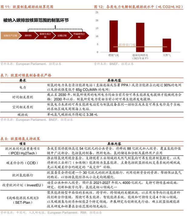 Ø 綠氫項(xiàng)目補(bǔ)貼:歐盟創(chuàng)新基金承諾提供 8 億歐元補(bǔ)貼,于 2023 年下半年啟動(dòng)制氫(綠氫)項(xiàng)目試點(diǎn)招標(biāo),中標(biāo)者未來(lái)十年可按每公斤綠氫獲得固定溢價(jià);